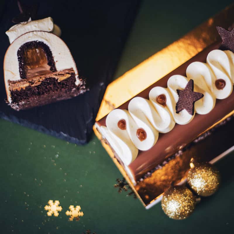Farine de blé non blanchie, beurre, chocolat, lait, œufs, sucre, levure, sel, crème d’amande, amandes tranchées.