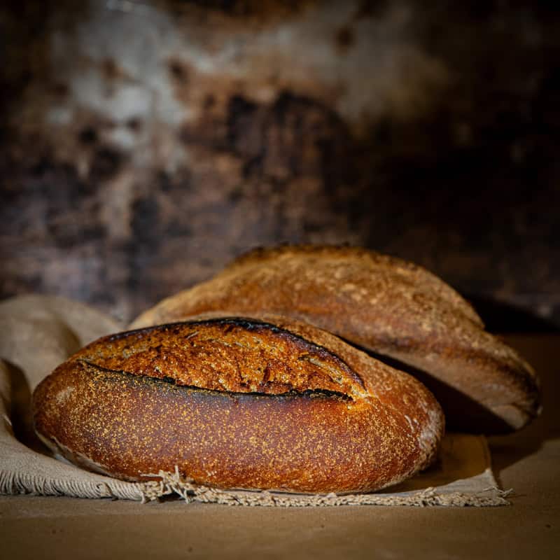 15% Farine de sarrasin bio, 85% Farine de blé, levain, levure, eau, sel.